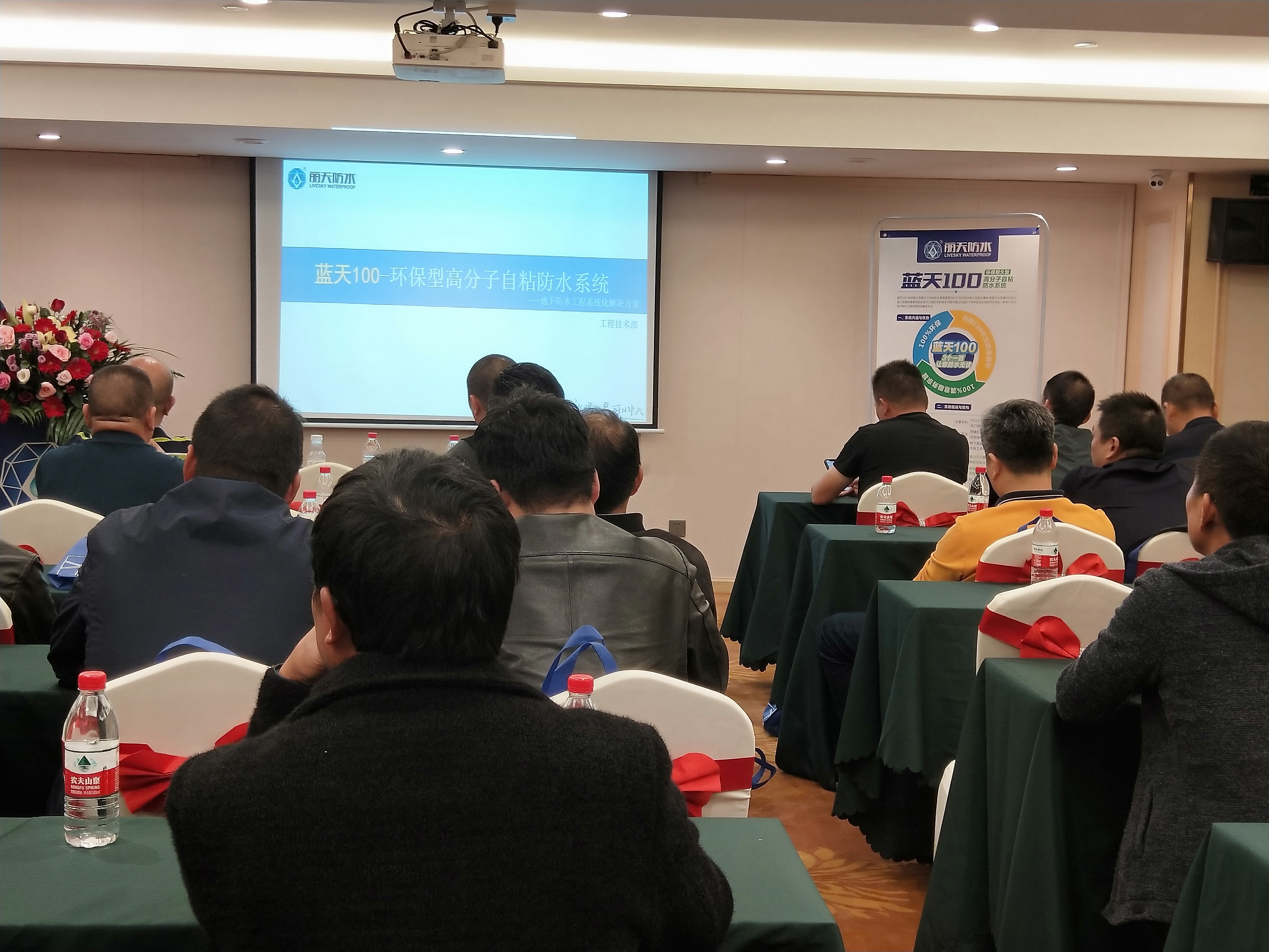 随後麗天防水(shuǐ)應用技(jì)術(shù)部工(gōng)程師(shī)對行業(yè)的發展方向與大家做了下(xià)分享,環保、耐用、客戶滿意将成為(wèi)主旋律,麗天防水(shuǐ)推出的“藍天100防水(shuǐ)系統”将這三個(gè)主要關注點融入了系統,以100%環保、100%滿意服務宗旨、耐用100年(nián)為(wèi)質量目标,推出了真正與建築同壽命的防水(shuǐ)系統,大幅度的提升工(gōng)程品質,讓您防水(shuǐ)無憂。