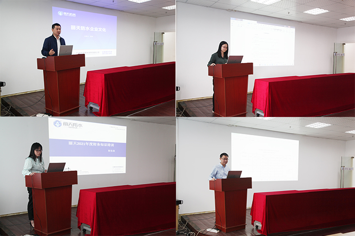 2月(yuè)24日,開(kāi)工(gōng)第二天,麗天防水(shuǐ)就(jiù)有條不紊的拉開(kāi)了為(wèi)期三天的春季培訓大幕。培訓内容從(cóng)企業(yè)文化、防水(shuǐ)産品知識及應用技(jì)術(shù)、财務制度、營銷政策、銷售技(jì)能(néng)等全方位多(duō)角度賦能(néng)參訓人員(yuán),為(wèi)2021麗天防水(shuǐ)完成年(nián)度目标、繪就(jiù)宏偉藍圖打下(xià)堅實基礎。麗天防水(shuǐ)總經理金仲文先生(shēng)、副總經理張林先生(shēng)等公司領導出席會(huì)議并發表講話。