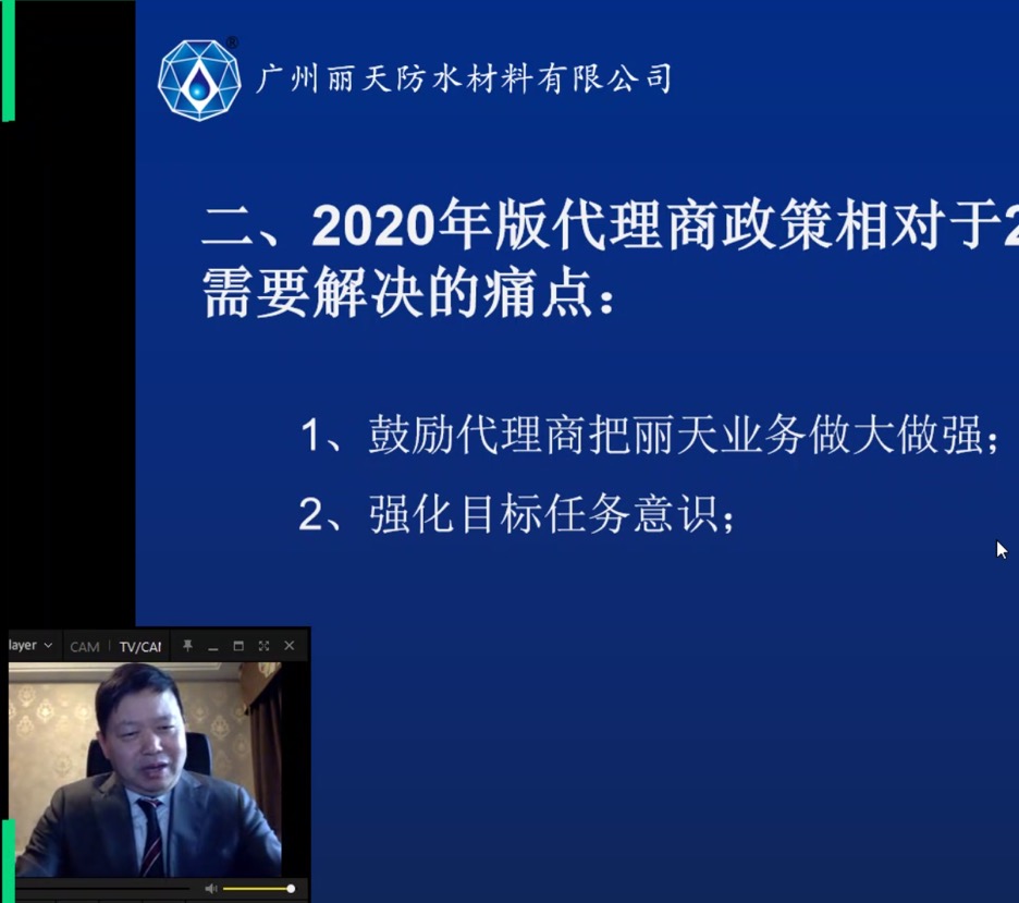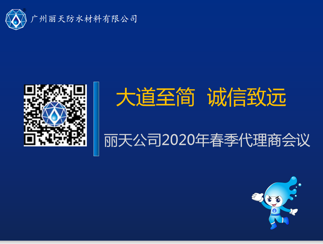 麗天公司總經理汪寶坤先生(shēng)為(wèi)本次會(huì)議作了《大道至簡 誠信緻遠(yuǎn)》的主題報(bào)告。他詳盡闡述了2020年(nián)版代理商政策相(xiàng)對于2019年(nián)版10個(gè)方面的改進内容,客觀分析了麗天公司在這場疫情危機(jī)下(xià)的有利條件(jiàn)。他指出,盡管當前疫情給防水(shuǐ)施工(gōng)造成了短時間的不便,但疫情過後,必将有一(yī)波市(shì)場機(jī)遇。他号召大家增強信心、自(zì)加壓力、把握機(jī)遇化危為(wèi)機(jī),再創輝煌。