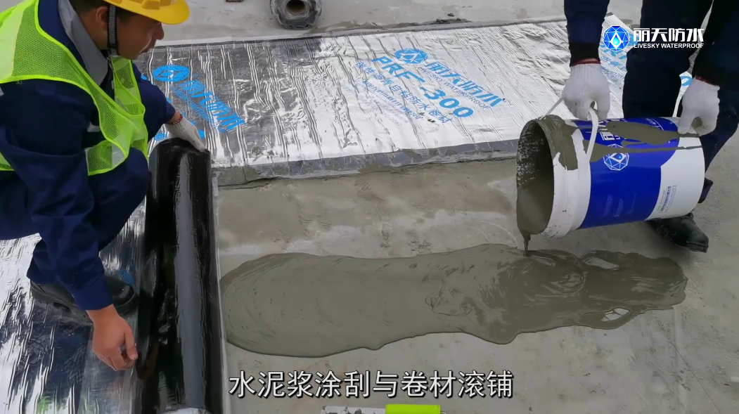 7、水(shuǐ)泥漿塗刮與卷材滾鋪