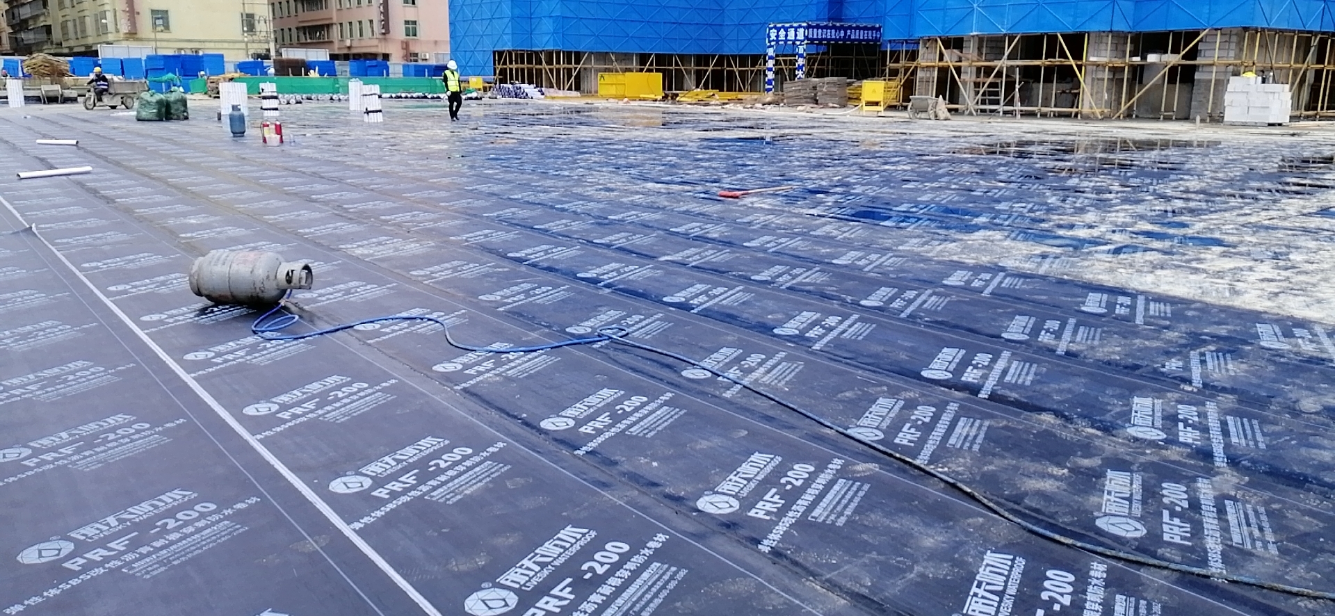 使用材料:強力交叉膜防水(shuǐ)卷材、高(gāo)分子壓敏反應型防水(shuǐ)卷材