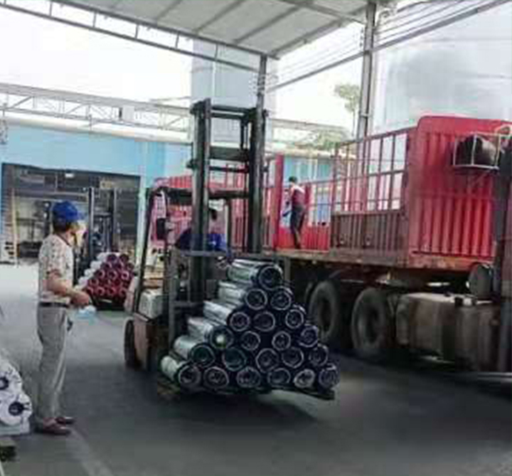裝貨區,工(gōng)人們正熟練認真的裝載每一(yī)桶塗料、每一(yī)平米卷材,産品碼放(fàng)整齊,包裝整潔幹淨,用心準備,麗天出廠的都是精品。