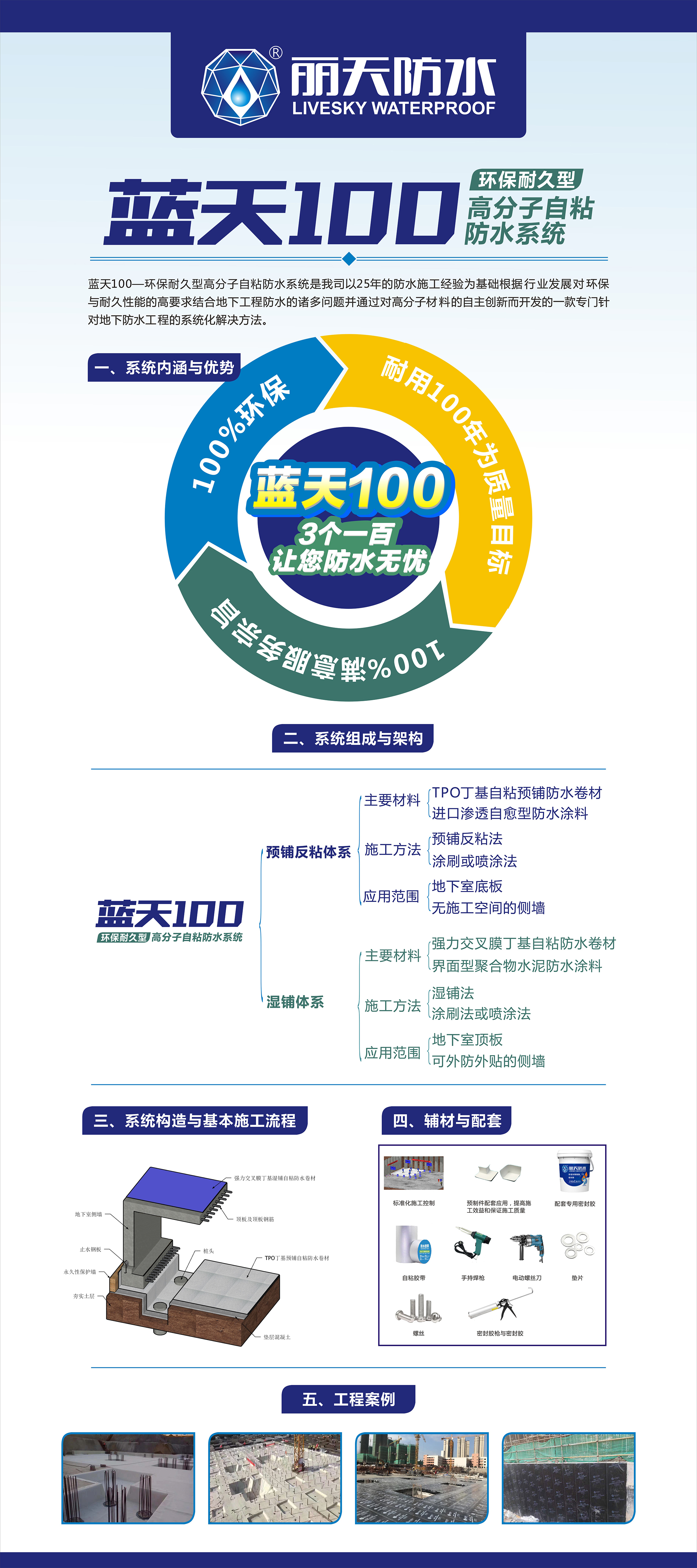 在防水(shuǐ)市(shì)場即将擴容的階段,麗天防水(shuǐ)已經提前研發了“藍天100防水(shuǐ)系統”,該系統将很好的适應新标準的要求,防水(shuǐ)工(gōng)作年(nián)限能(néng)滿足100年(nián)的設計工(gōng)作年(nián)限,100%綠色環保,100%讓客戶滿意。麗天防水(shuǐ)将秉承:堅持标準生(shēng)産,堅持生(shēng)産标準産品,堅持服務高(gāo)效化的理念,穩定和持續發展,為(wèi)中國(guó)防水(shuǐ)領域貢獻自(zì)己的力量。
