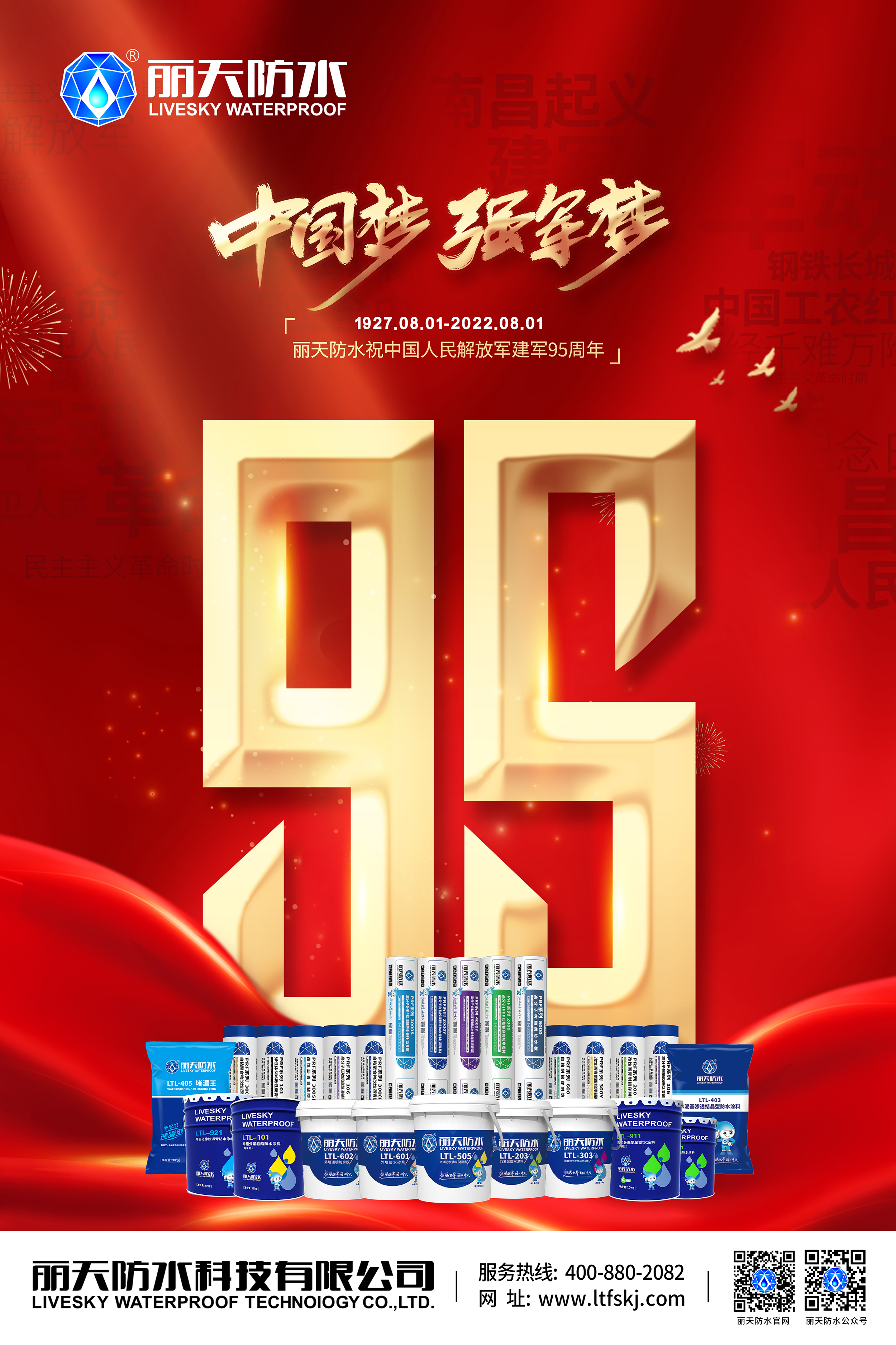 麗天防水(shuǐ)祝賀中國(guó)人民(mín)解放(fàng)軍建軍95周年(nián)!