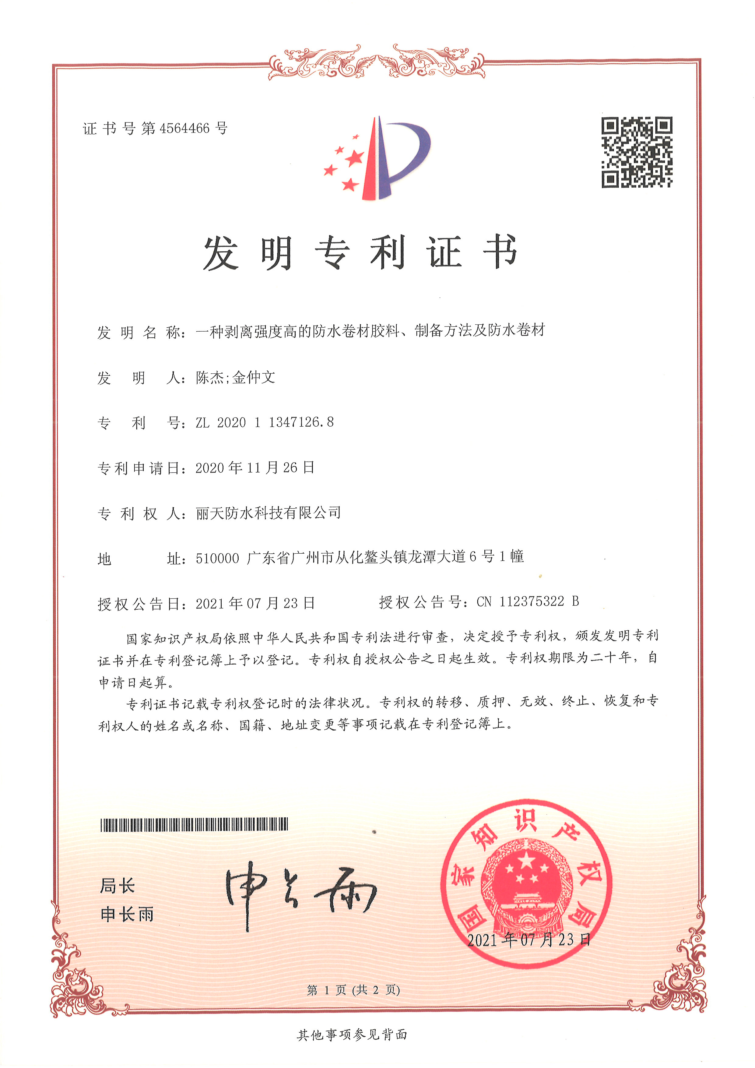 自(zì)粘聚合物(wù)改性瀝青防水(shuǐ)卷材是以SBS、SBR等合成橡膠、碳纖維、增粘劑及優質道路(lù)石油瀝青等配置成的防水(shuǐ)卷材。該産品以專利技(jì)術(shù)《專利号:ZL202011347126.8》為(wèi)支撐,在傳統配方和工(gōng)藝上(shàng),進行了多(duō)方面的升級,具有更好的粘結力和延伸性能(néng)。