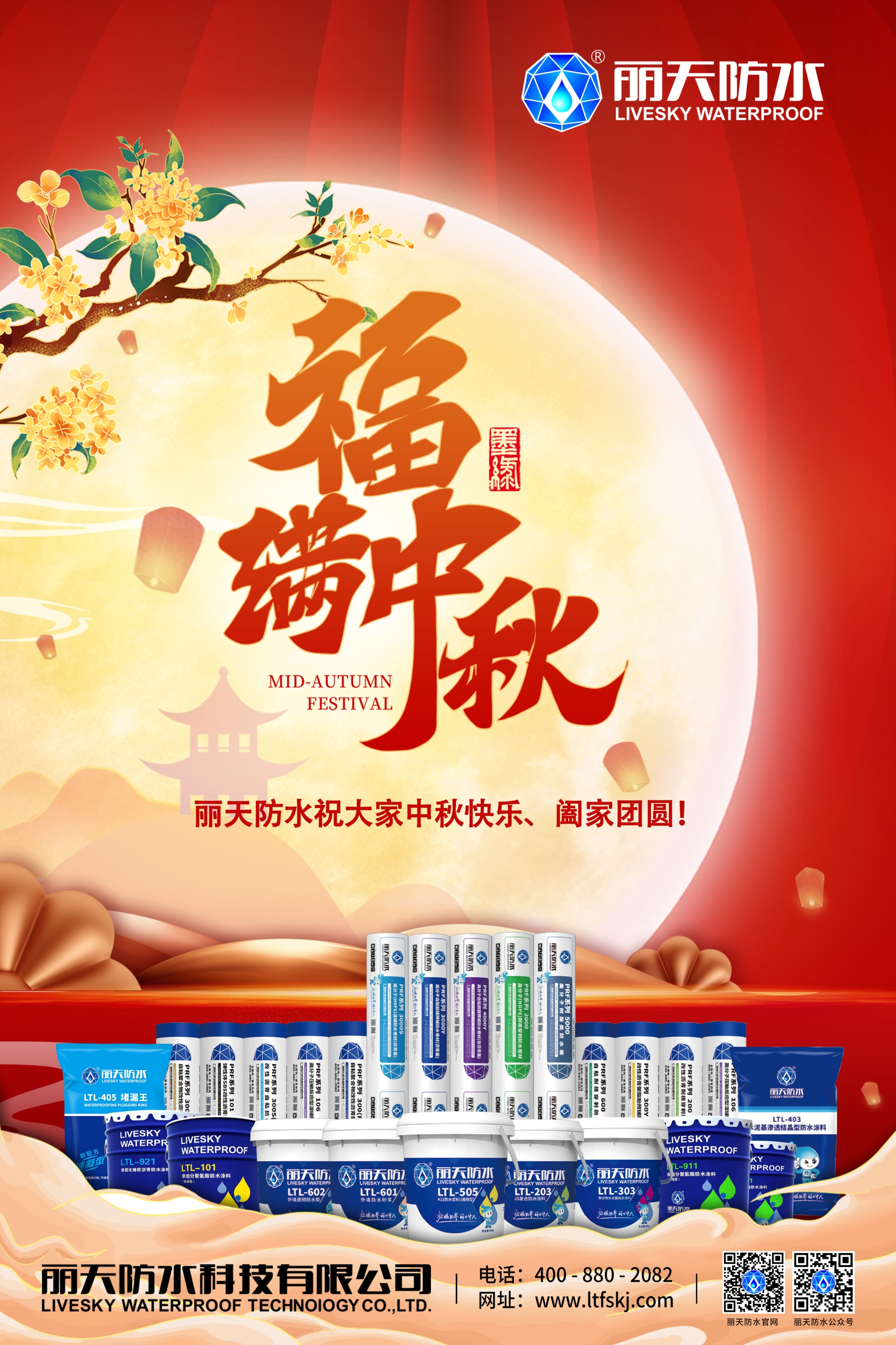 值此中秋佳節之際,麗天防水(shuǐ)祝全球華人中秋快樂、阖家幸福!