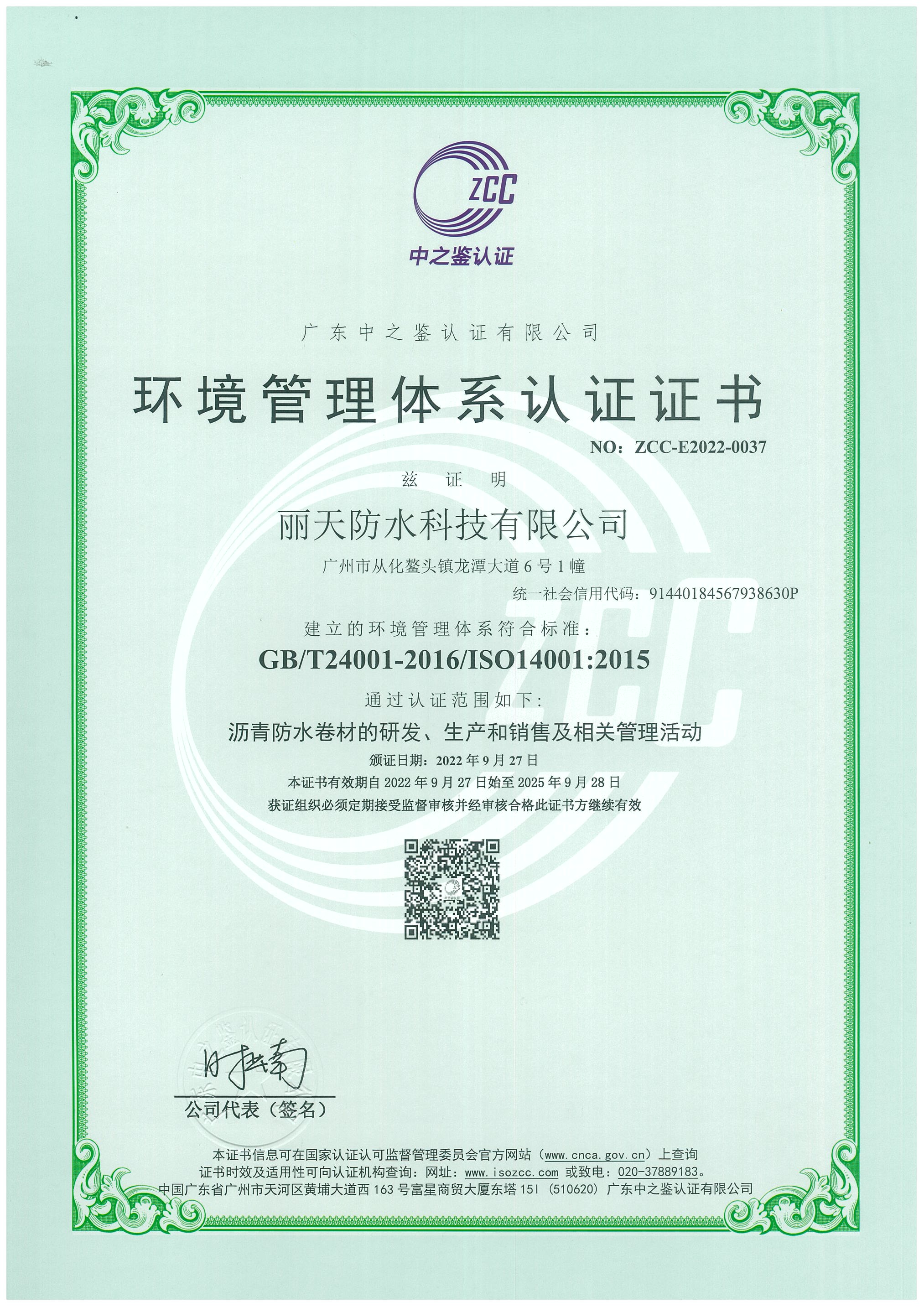 麗天防水(shuǐ)自(zì)2015年(nián)開(kāi)始質量管理體系運行,先後相(xiàng)繼通(tōng)過環境管理體系認證和職業(yè)健康安全體系認證。一(yī)路(lù)走來,麗天防水(shuǐ)在企業(yè)體系工(gōng)作方面不斷進行積極探索,通(tōng)過對全體員(yuán)工(gōng)的宣傳、培訓,嚴格按照(zhào)體系文件(jiàn)中的規定執行和實施,在執行過程中不斷改進和完善,與國(guó)際接軌,使公司形成一(yī)個(gè)系統,完善的管理平台,提高(gāo)了全體員(yuán)工(gōng)的工(gōng)作效率和積極性,為(wèi)公司持續發展奠定了堅實的基礎。