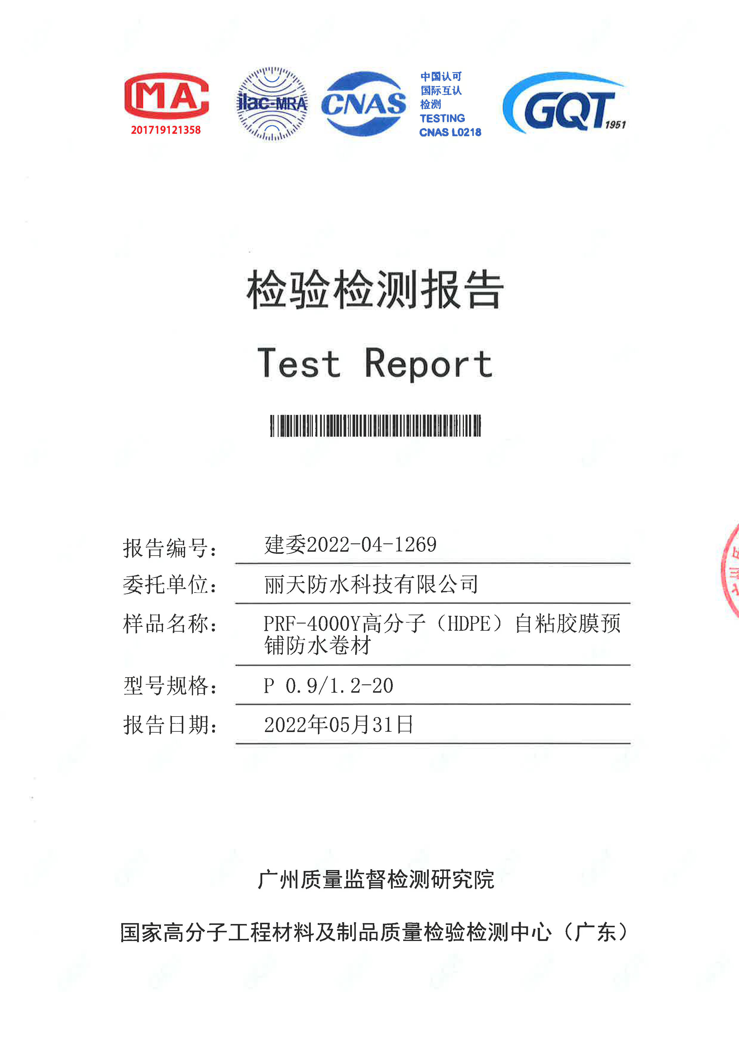 産品推薦|麗天PRF-4000Y 高(gāo)分子(HDPE)自(zì)粘膠膜預鋪防水(shuǐ)卷材
