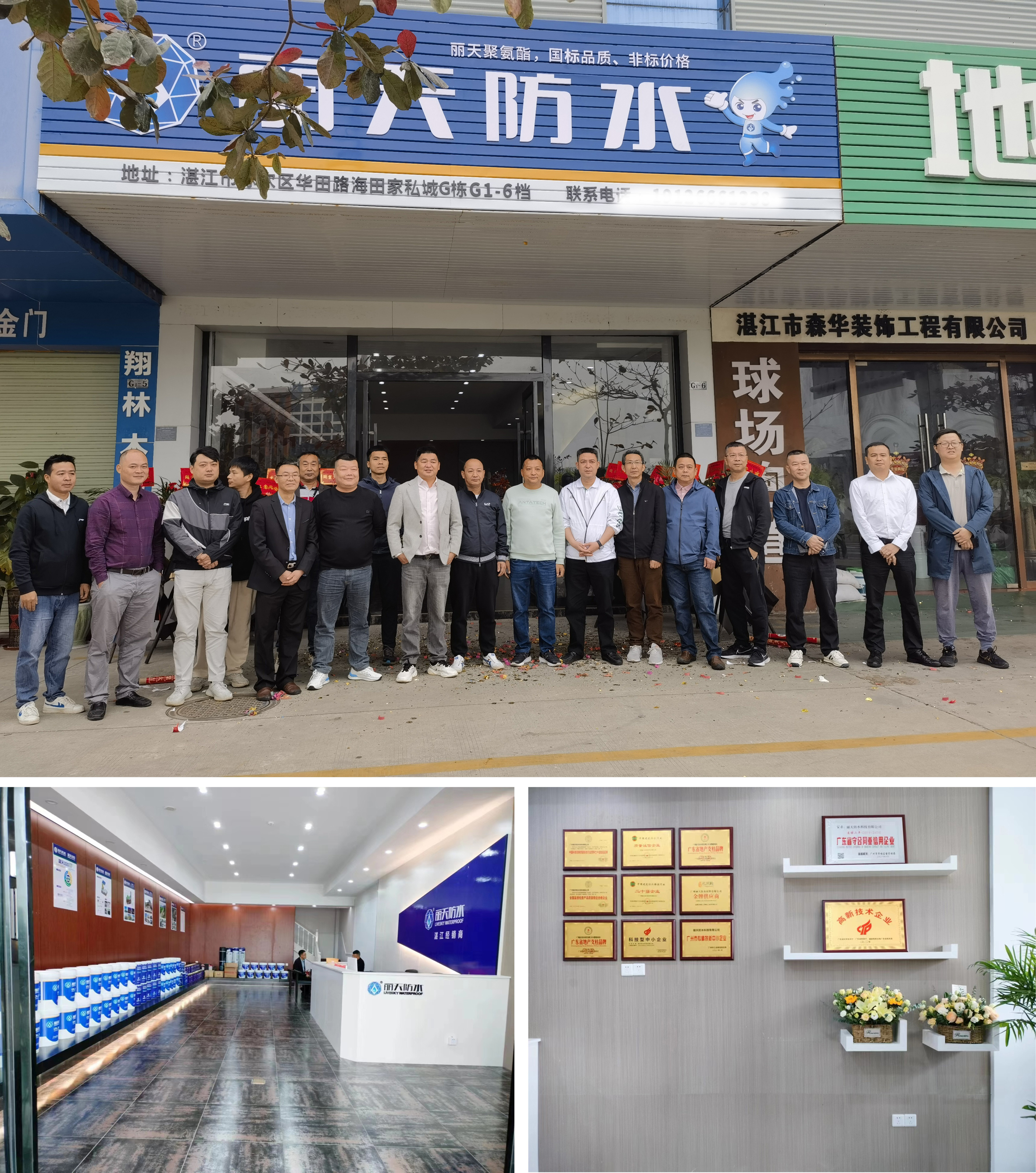 2023年(nián)2月(yuè)25日,麗天防水(shuǐ)湛江專賣店在鑼鼓和鞭炮中盛大開(kāi)業(yè)。麗天防水(shuǐ)渠道部總監劉巍等相(xiàng)關領導出席了開(kāi)業(yè)儀式,并送上(shàng)祝福。湛江專賣店的開(kāi)業(yè)也意味著(zhe)麗天防水(shuǐ)做透華南(nán)市(shì)場的規劃布局正在穩步實現。